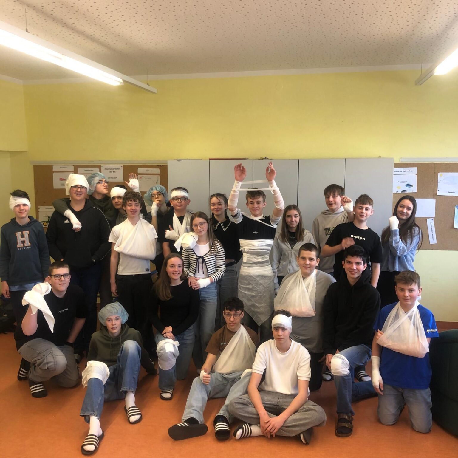 Die Schüler:innen der 4c und 4m der Mittelschule Fehring absolvierten einen 16-stündigen Erste-Hilfe-Grundkurs. Dabei lernten sie wichtige Maßnahmen wie stabile Seitenlage, die Reanimation oder den