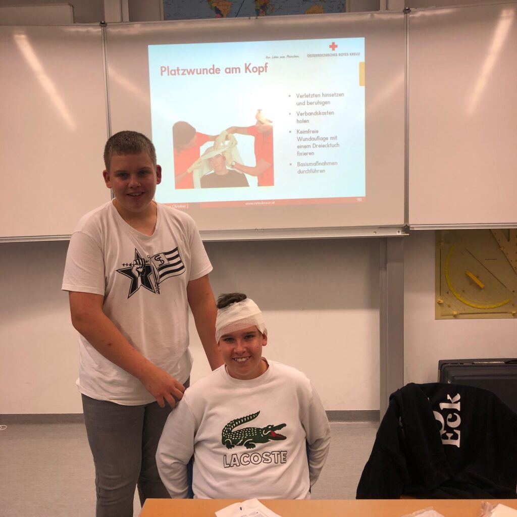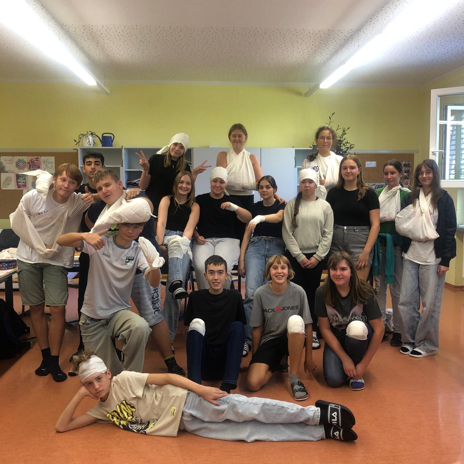 Unter diesem Motte standen die letzten Tage der 4a und 4b Klasse. Die Schülerinnen und Schüler lernten in einem 16-stündigen Erste-Hilfe-Grundkurs, wie man in Notfallsituationen richtig reagiert. Themen wie Notruf absetzen, stabile Seitenlage, Reanimation oder Versorgung von Wunden wurden praxisnah vermittelt und in engagierter Partnerarbeit geübt. Wir gratulieren allen Teilnehmerinnen und Teilnehmern zur positiven Absolvierung.