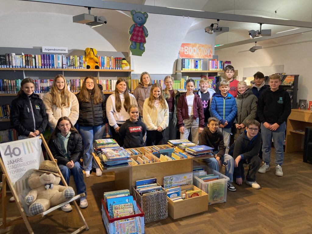Um unseren Schülerinnen und Schülern einen weiteren „Leseort“ außerhalb der Schule näher zu bringen, besuchen in diesem Schuljahr alle Klassen im Rahmen des Deutschunterrichts die Stadtbibliothek Fehring im Gerberhaus. Von der Leiterin der Stadtbibliothek, Frau Gabriele Bichler, bekommen die Lernenden nicht nur eine kleine Geschichtsstunde in Bezug auf die lokale Historie des Gerberhauses, sowie einen Überblick über das vielfältige Kulturangebot im Gebäude, sondern auch Einblicke in die Arbeit einer Bibliothekarin / eines Bibliothekars. Was natürlich auch nicht fehlen darf, ist die Möglichkeit zum Schmökern und Gustieren im bunten Angebot an Lesestoff in der Stadtbibliothek.