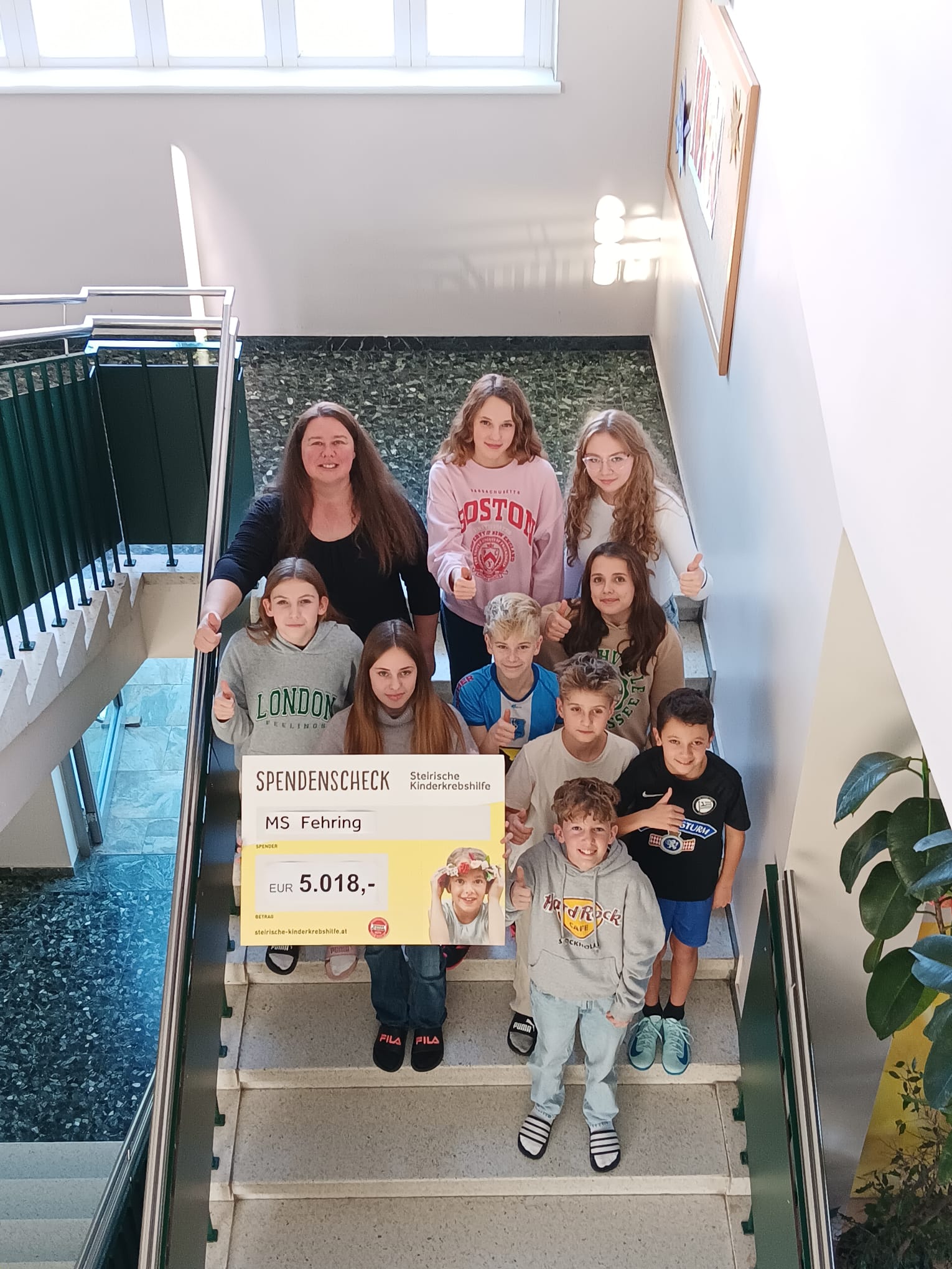 Auch heuer sammelten viele der Klassen der Mittelschule Fehring für den guten Zweck. Dank dem Einsatz der Schülerinnen und Schüler konnten ganze € 5.018,- für die Steirische Kinderkrebshilfe zusammengetragen werden!