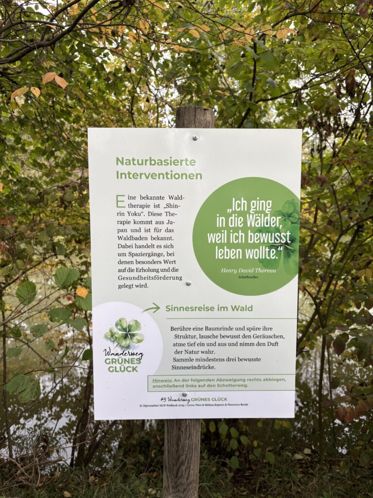 Im Rahmen der Diplomarbeit von drei Absolventinnen unserer Schule, durften die Schülerinnen und Schüler des Alternativen Pflichtgegenstandes Kreativität und Persönlichkeit den Wanderweg „Grünes Glück“ erleben.