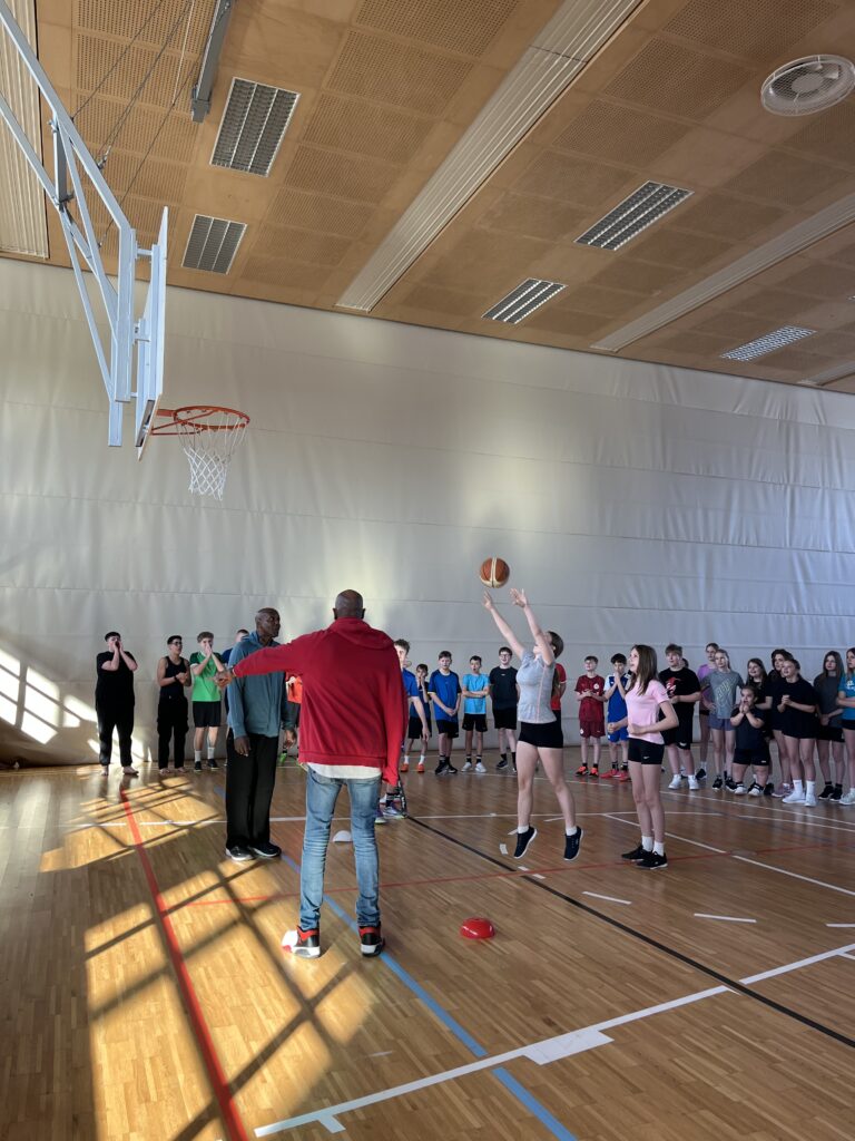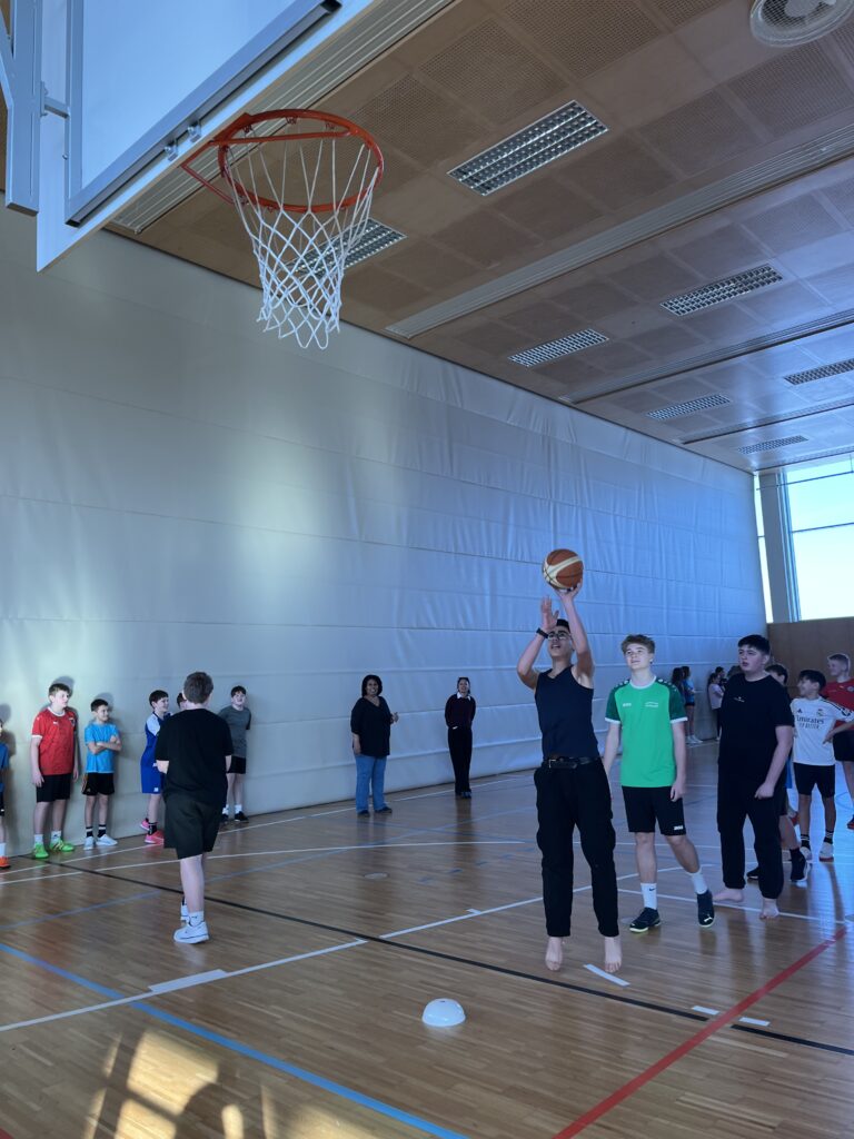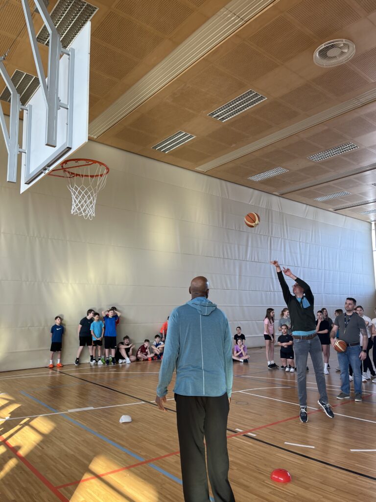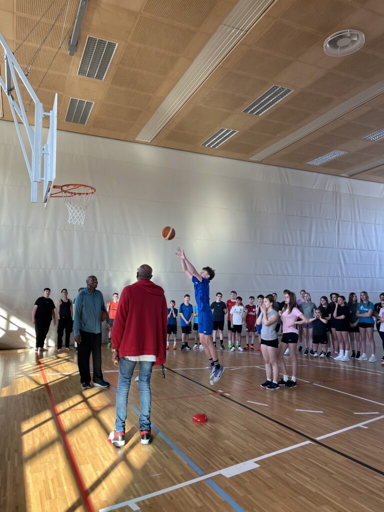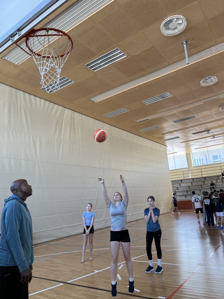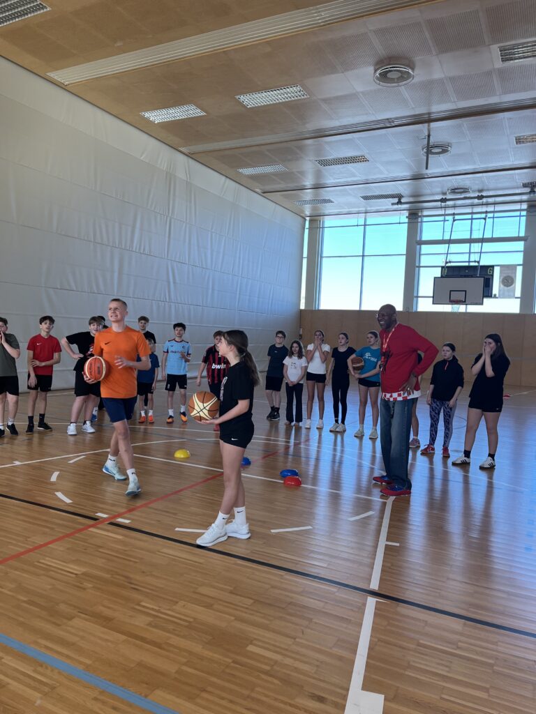 Auf dem abwechslungsreichen Programm standen kommunikative Speaking-Tasks, kreative Gruppenarbeiten, Sprachspiele sowie sportliche Aktivitäten. Besonders actionreich wurde es beim Basketballtraining mit Ex-Profi-Spieler Harry Bell. Hier hieß es: dribbeln, passen, punkten.